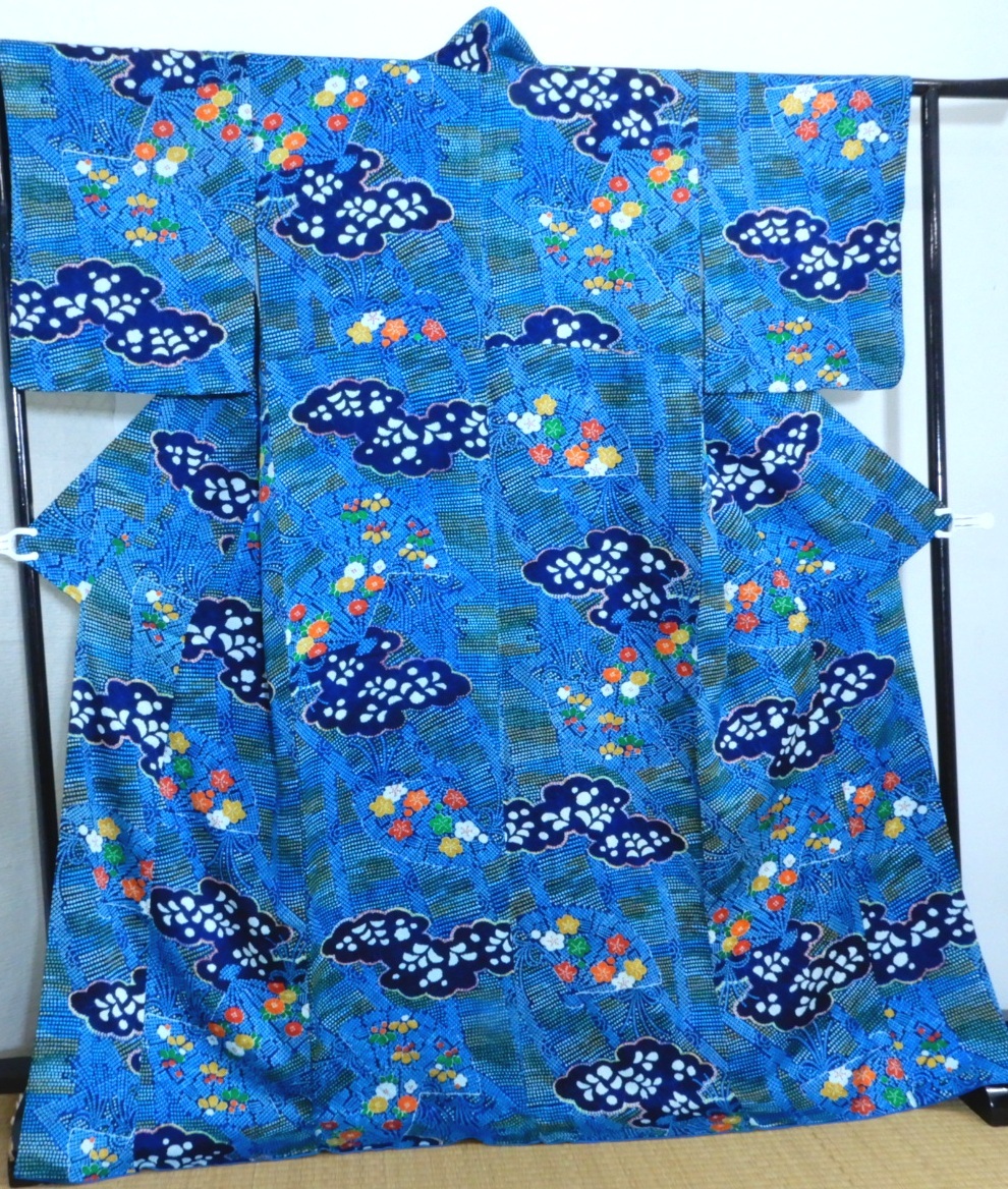 - <銀の斧>正絹・小紋袷着物・絞り染風