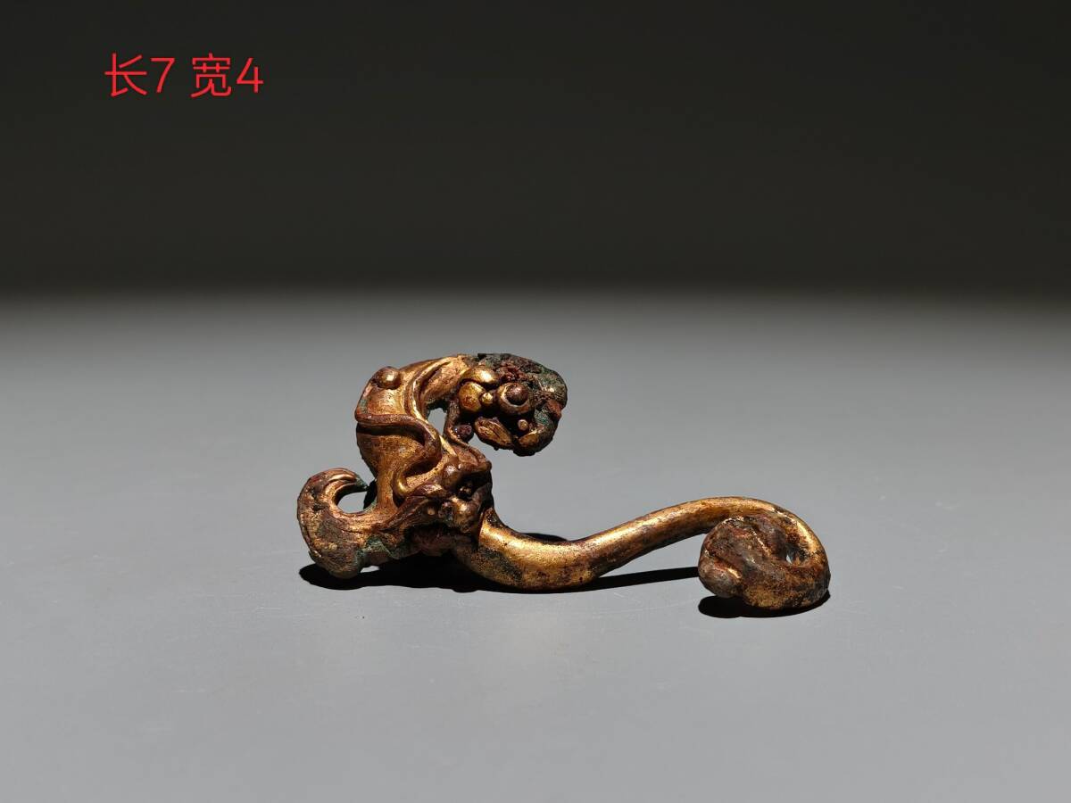 - 蔵友旧蔵出 戦漢 青銅作 精工 塗金 神獣帶鉤 希少珍品 貴重品 置物 古賞物 中国古玩 中国古美術品 館蔵品