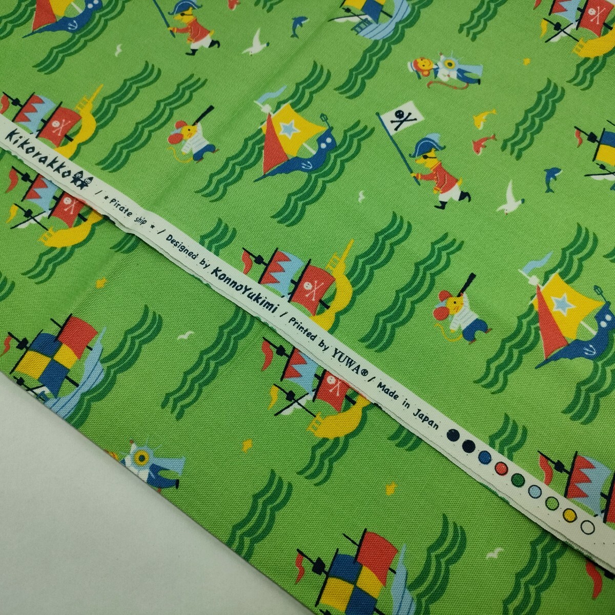- 【★送料無料★プリント生地《YUWA》緑色★幅110cm×長さ約107cm★ 】