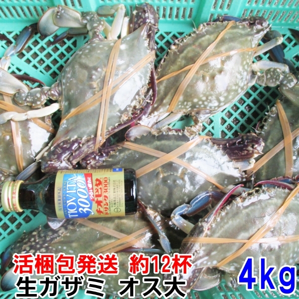 - 活梱包!オス大サイズ 4kg(約12杯)ガザミ 渡り蟹 ワタリガニ がざみ わたりがに 活蟹 梭子蟹 ケジャン 松島牡蠣屋 生カニ 生蟹 雄