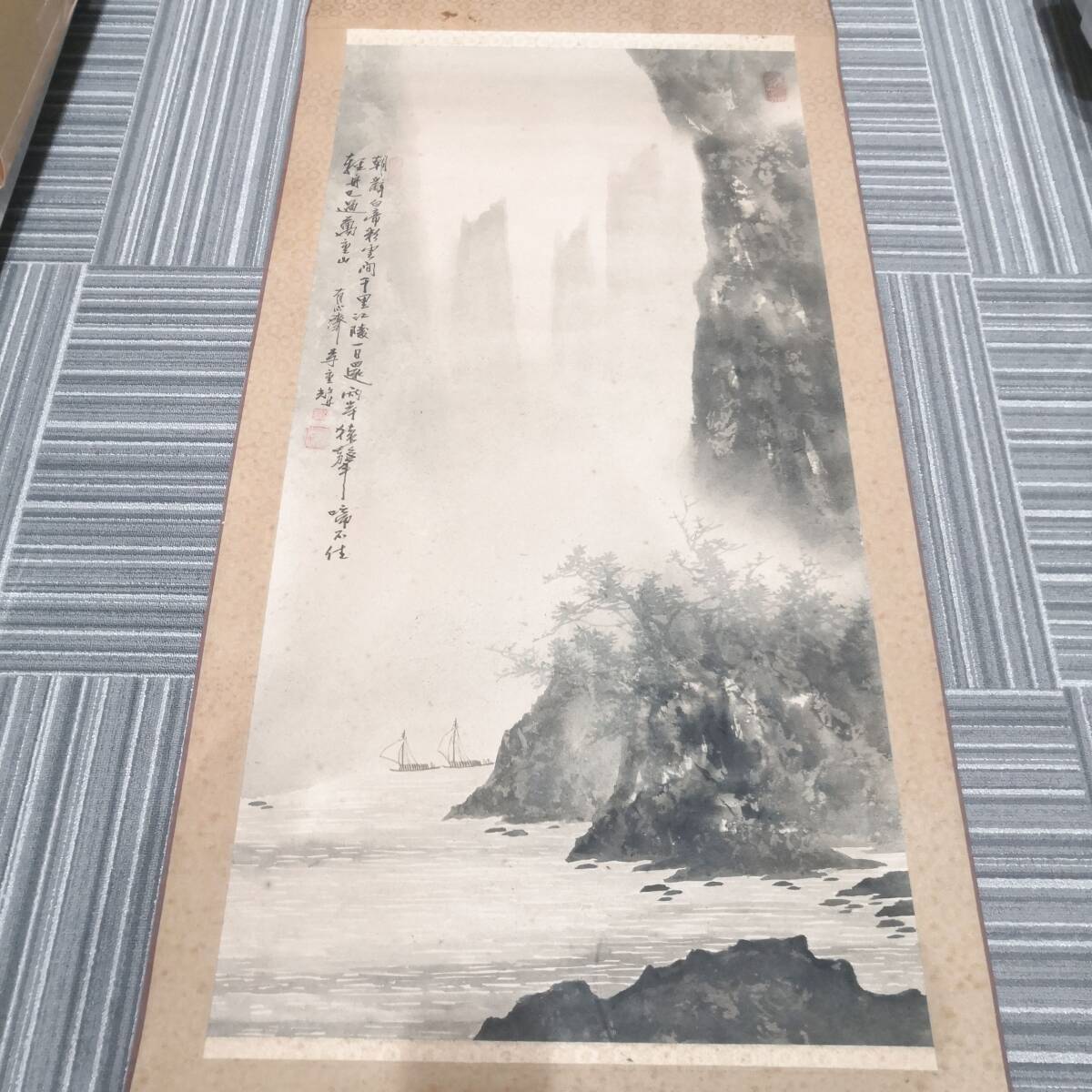 - 【18】山 風景 巻物 掛け軸 掛軸 日本画 骨董 日本書 伝統品 骨董品 時代物 年代物 美術品 芸術品 コレクション
