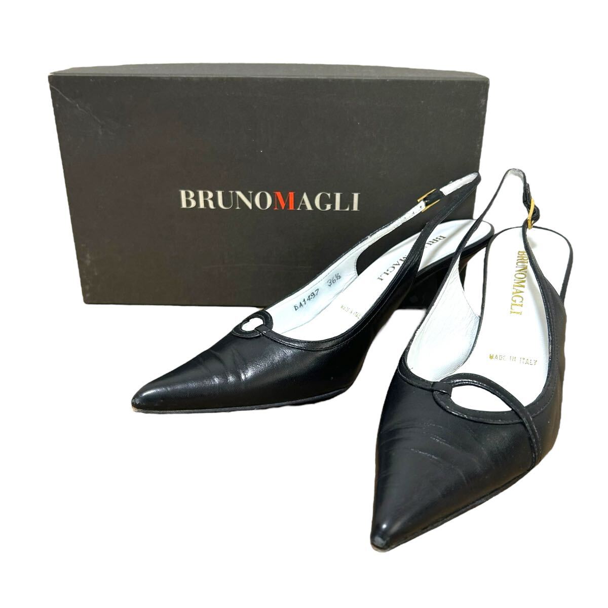 - 【箱付き】BRUNOMAGLI(ブルーノマリ) レザーミュール バックストラップ ブラック イタリア製 表記36.5(23.5cm)