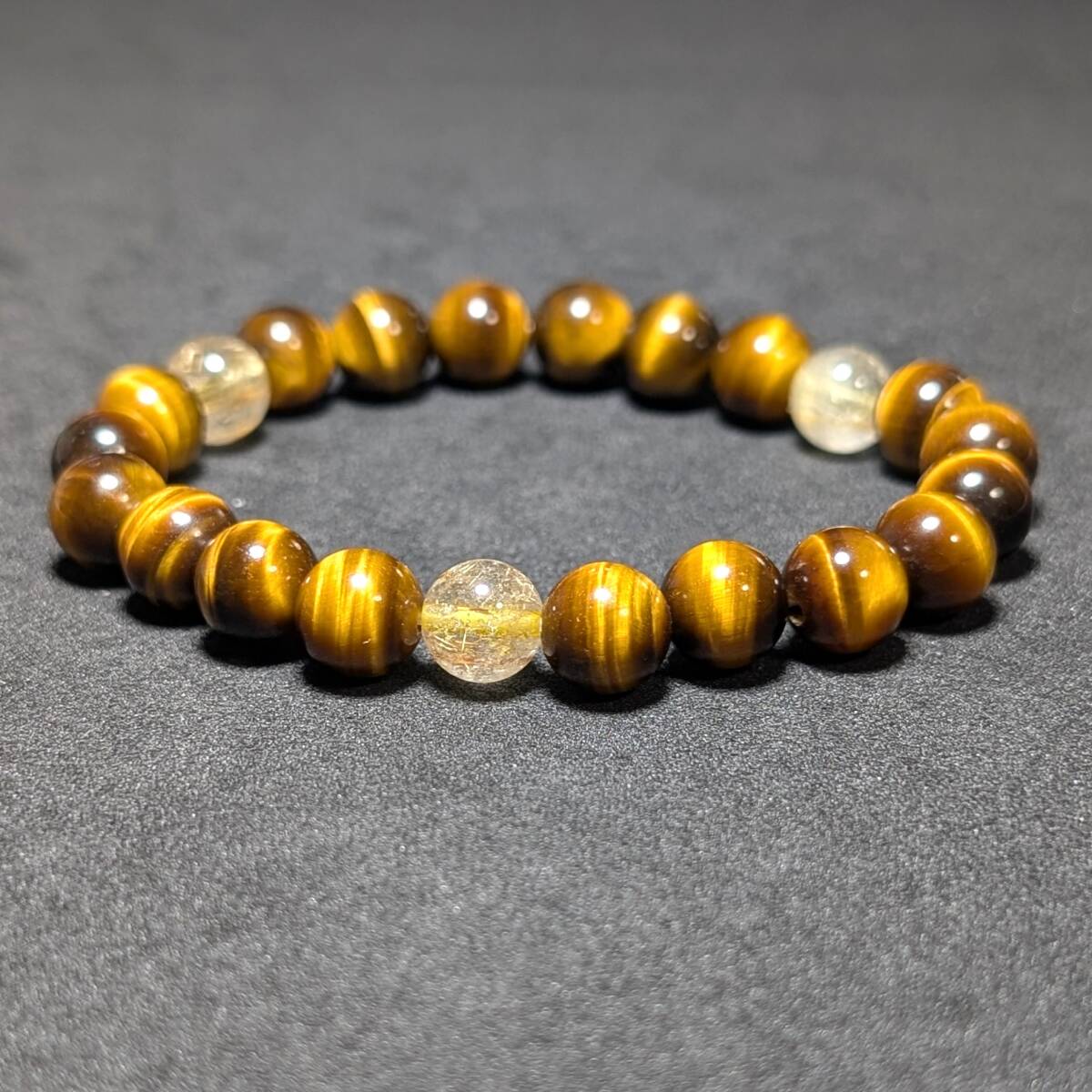 - 【開運・金運】ゴールド タイチンルチル クォーツ タイガーアイ ブレスレット 天然石 8ミリ お守り効果 パワーストーン 数珠 贈り物 ギフト