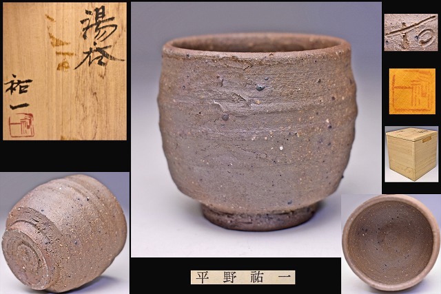 - 平野祐一 ★ 常滑 湯呑 ★ 共箱 (汚れ有り) 共布 栞 ★ 毎日楽しめる逸品 ★ 南蛮焼風 ★
