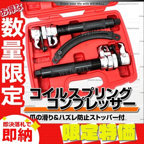 - 【限定セール】ストッパー付き コイル スプリングコンプレッサー 2本1組 インパクトレンチ・エアーラチェット対応 整備 工具