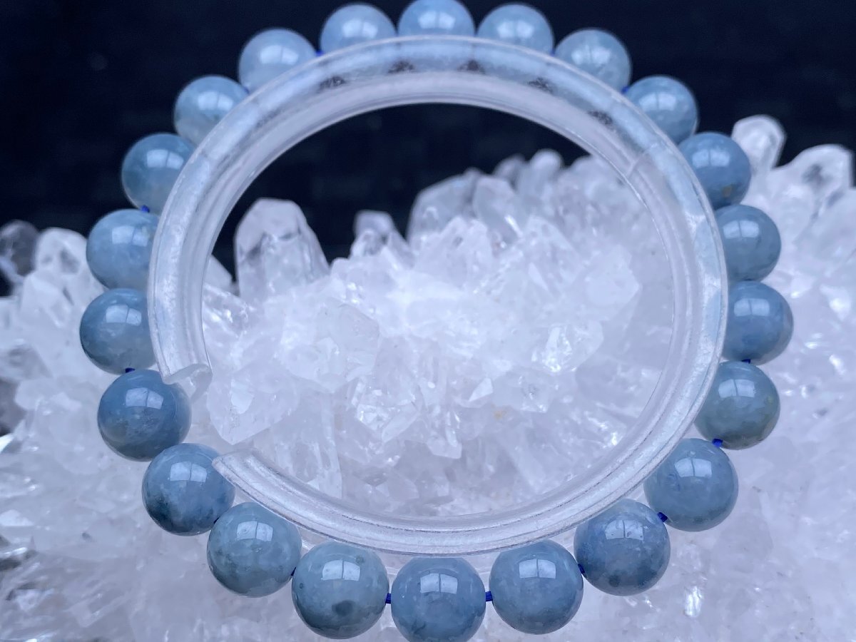 - 即決 0616k465 天然石【65Aスノーデュモルチェライトインクォーツ】 ブレス 8.5mm(新品)