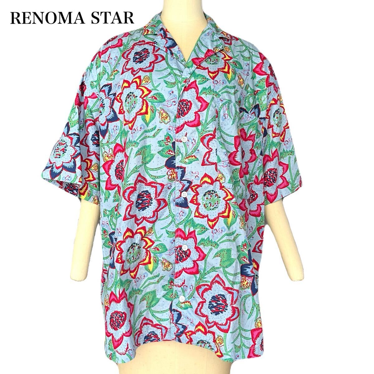 - レノマ RENOMA STAR femme renoma シャツ 半袖 柄シャツ アロハシャツ レトロ アロハ 花柄 綿 日本製 46 メンズ ヴィンテージ