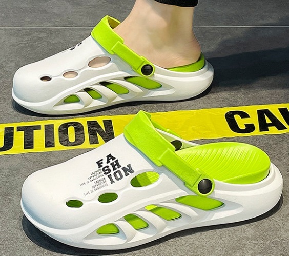 - 夏新作 オシャレ 2ways厚底 スリッパ メンズ ビーチ リゾートサンダル 防滑 つま先保護 白緑/26-26.5cm