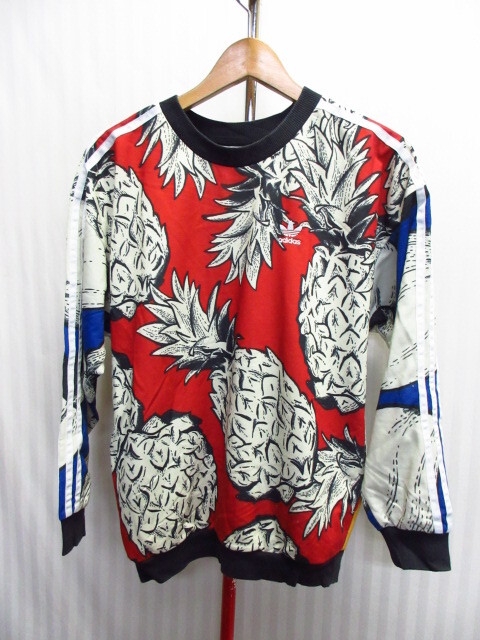 > アディダス トレフォイル刺繍トレーナー SIZE M 総柄デザイン派手柄トレーナー スウェットジャージトップ 長袖カットソー 09123