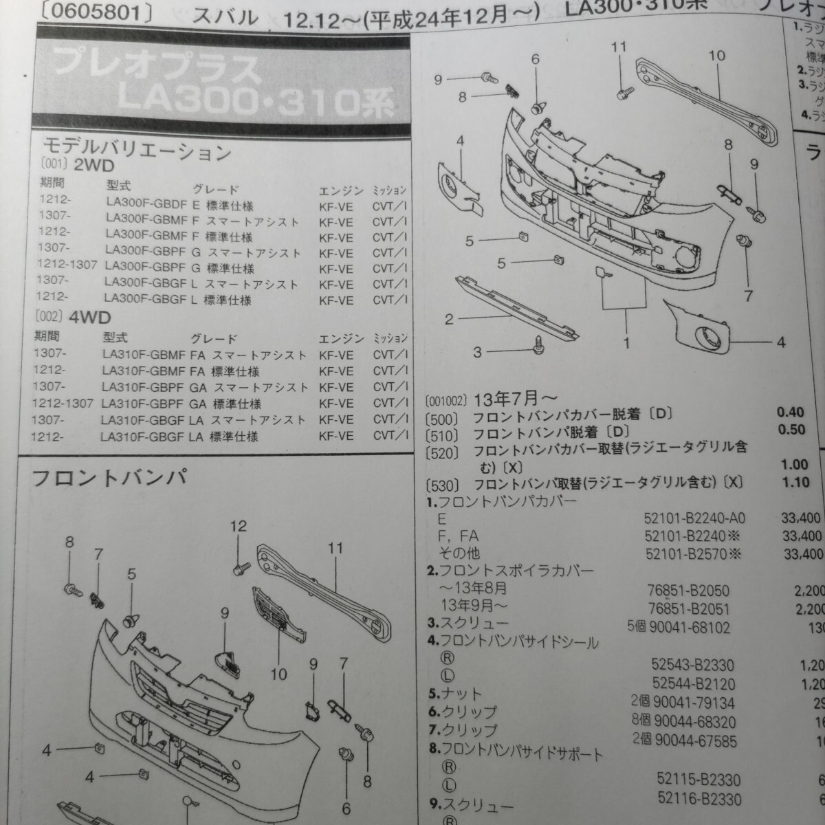 > ■■【パーツガイド】 スバル プレオプラス (LA300・310系) H24.12~ 2013年後期版 【絶版・希少】