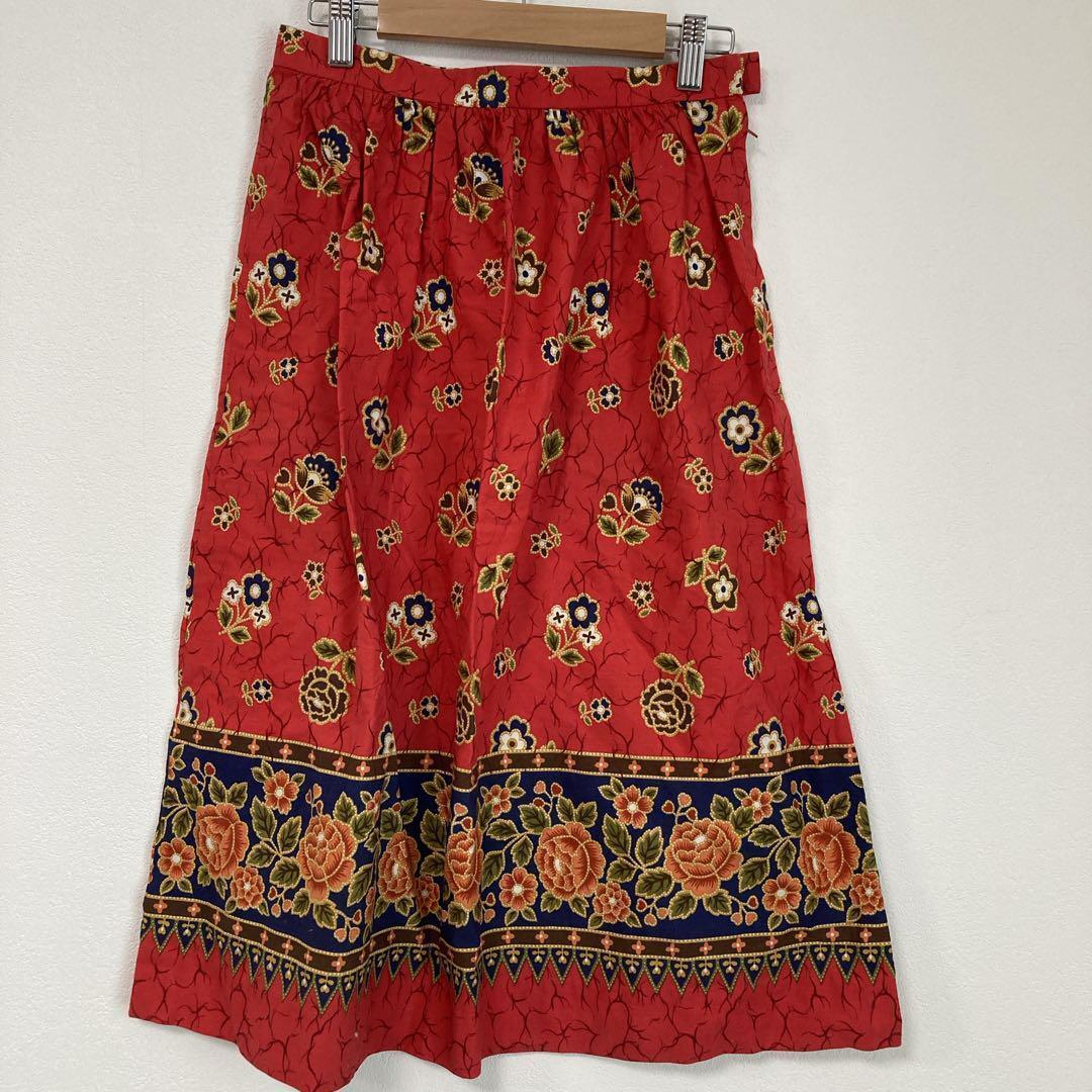 - 【美品】ひざ丈フレアスカート(one)ミモレ丈*一点物*花柄*総柄*派手*薄手