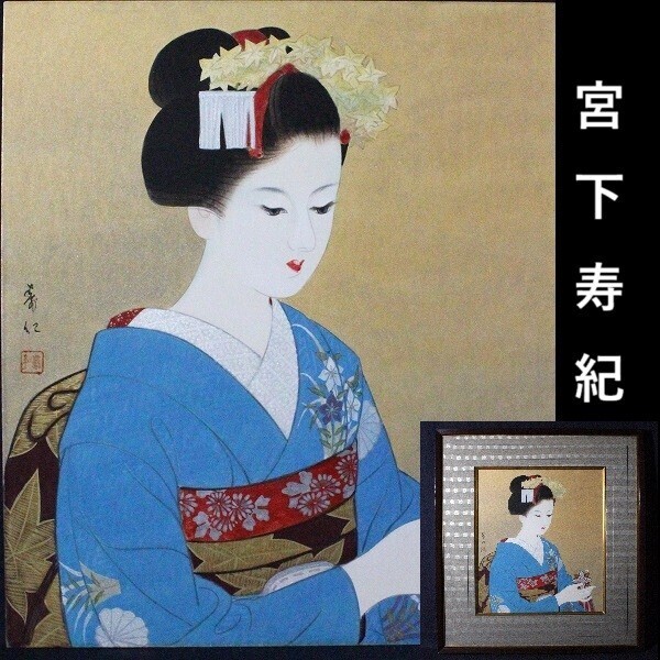 - 宮下寿紀 「手鞠」 日本画10号 真作 舞子 美人画 師・伊東深水 D872
