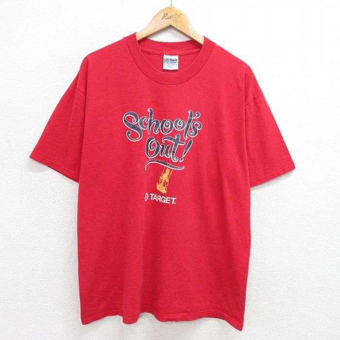 - XL/古着 半袖 ビンテージ Tシャツ メンズ 90s Schools out TARGET コットン クルーネック 赤 レッド 24jun27 中古