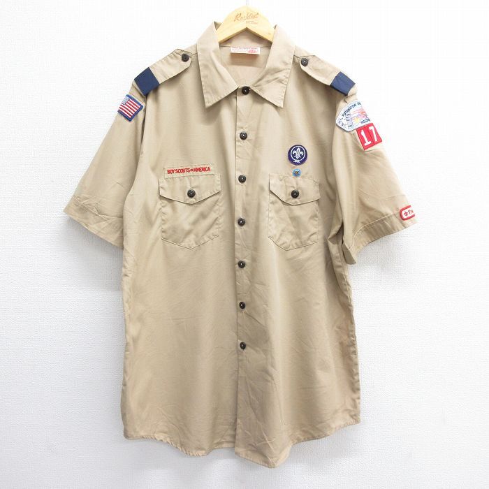 - XL/古着 半袖 ボーイスカウト シャツ メンズ 90s 大きいサイズ ロング丈 ベージュ カーキ 24may28 中古 トップス