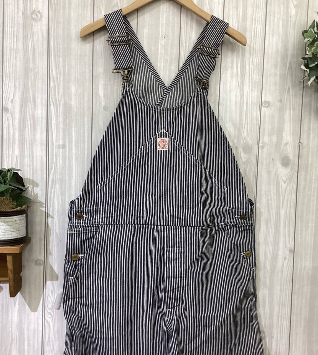 > 26☆0006 中古 美品 ヘッドライト HEAD LIGHT ヒッコリーストライプ オーバーオール 3432 ワンウォッシュ日本製★2
