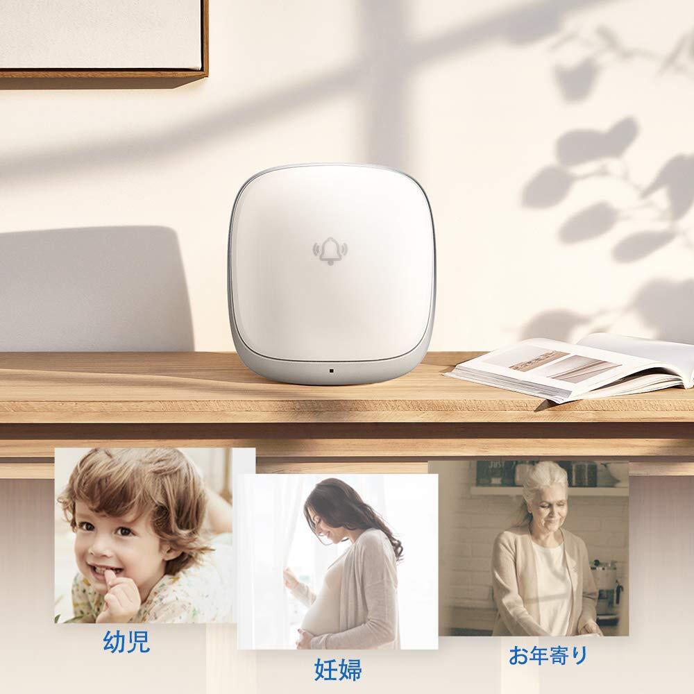 - 音と光で呼び出し 7色LED 防水防塵 ワイヤレスチャイム 玄関 自動発電
