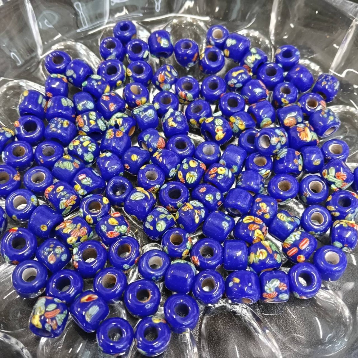 > L100 ☆未使用 大量 トンボ玉 チェコ ガラスビーズ 140g 9×7m ラウンド ブルー ネイビー 大粒 ヴィンテージ パーツ ネックレス B-406