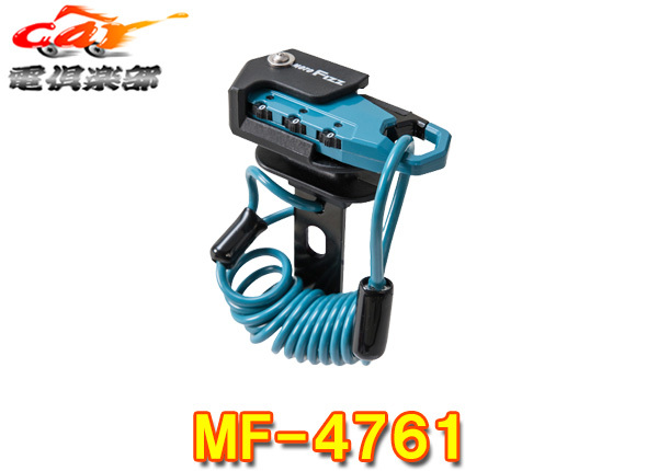 > 【取寄商品】TANAXタナックスMF-4761ヘルメット盗難防止用コイル式ワイヤーダイヤルロック(サックスブルー)・ハンドル取り付け型