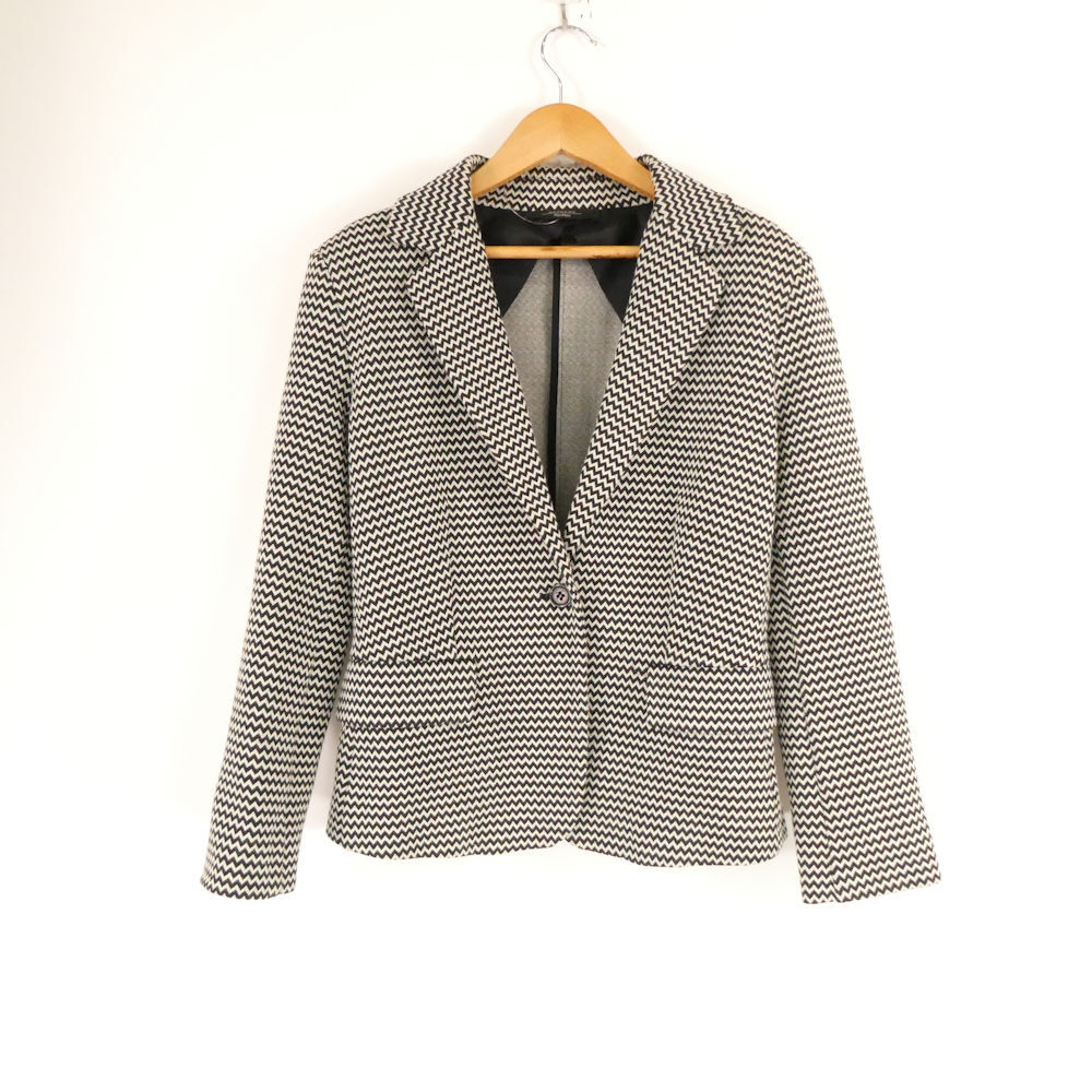 - 美品 maxmaraWEEKEND マックスマーラ ジャケット Sサイズ ポリエステル他 背抜き ブラック ホワイト 幾何学模様 レディース AO3135A7