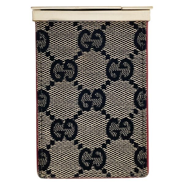 - 15801 グッチ シガレットケース GGキャンバス レザー 革 ネイビー 紺 レッド 赤 030 0959 GUCCI ロゴ