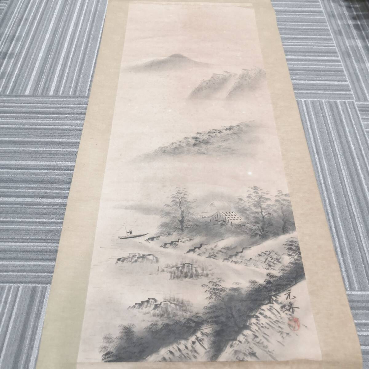 - 【207】山 景色 巻物 掛け軸 掛軸 日本画 骨董 日本書 伝統品 骨董品 時代物 年代物 美術品 芸術品 コレクション