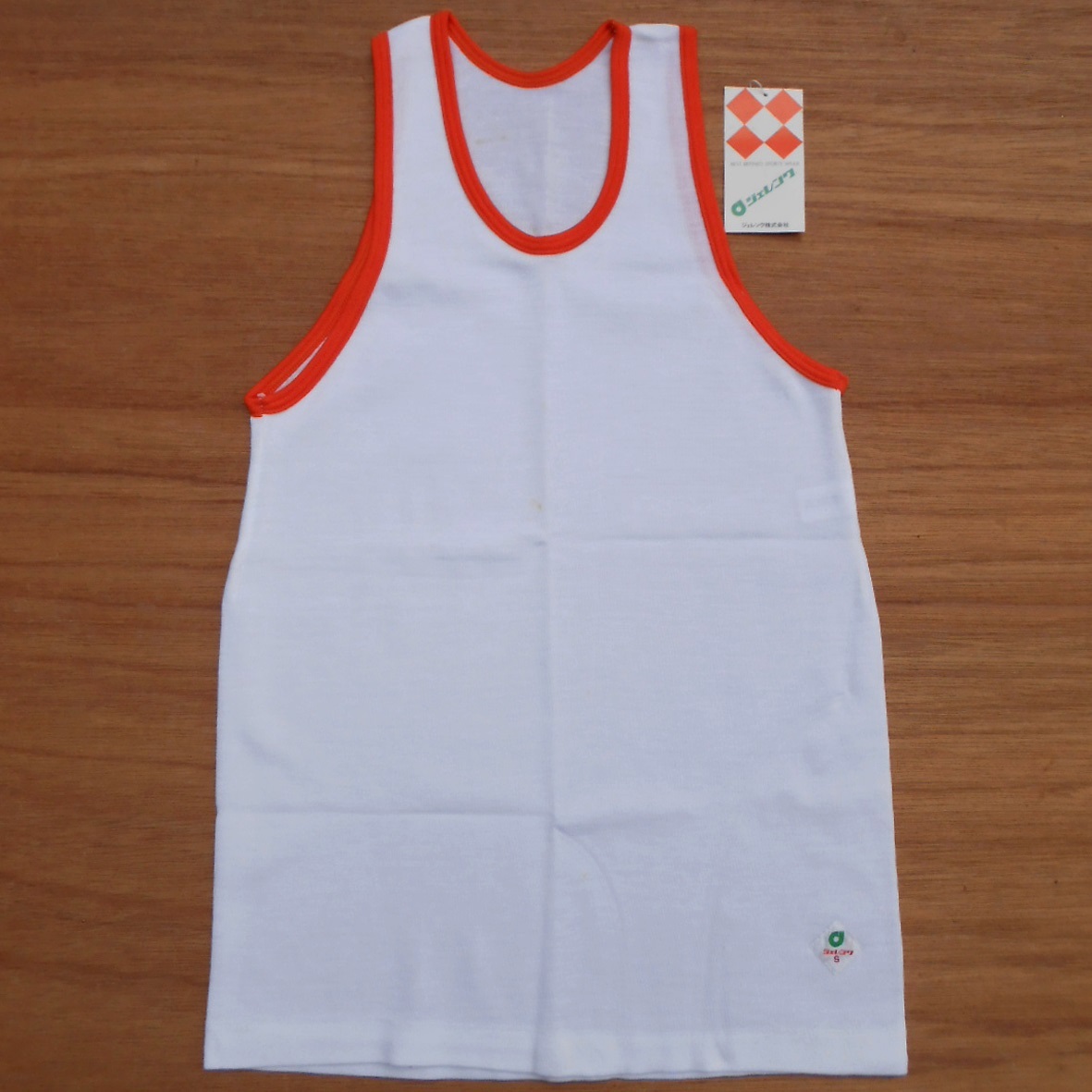 - 未使用 '70s Jelenk ジェレンク 白xオレンジ S ランニングシャツ タンクトップ 運動着 ヴィンテージ 昭和 レトロ 当時物 asics アシックス