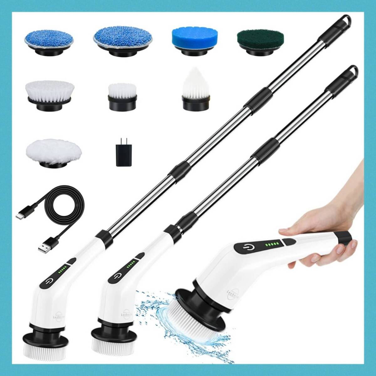 - コードレス電動お掃除ブラシ 伸縮タイプ ヘッド3種類対応