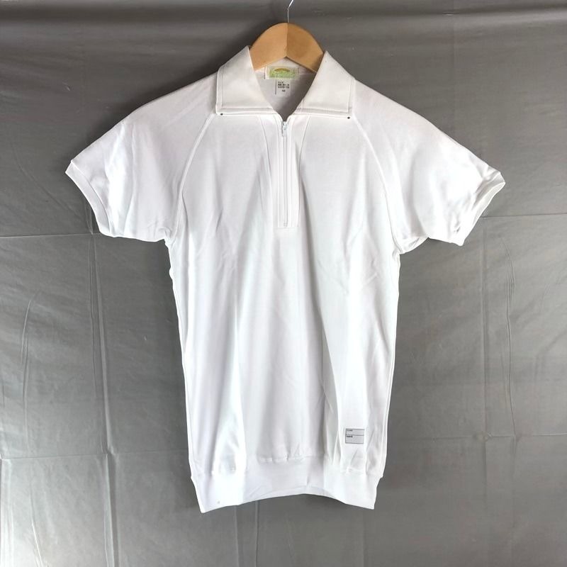 > 虹っ子ルック カットソー シャツ 半袖 ジップ リブ 綿100% ネームタグ付き 白 160サイズ 2025083000226