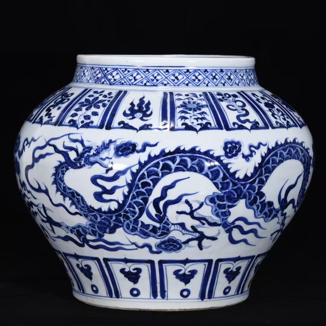 - 元時代 青花磁器 竜紋缶・かめ 秘蔵 35cm古陶磁器 陶芸 唐物 古賞物 時代物 骨董品 古置物 極細工 中国磁器 古美味 中国古玩921