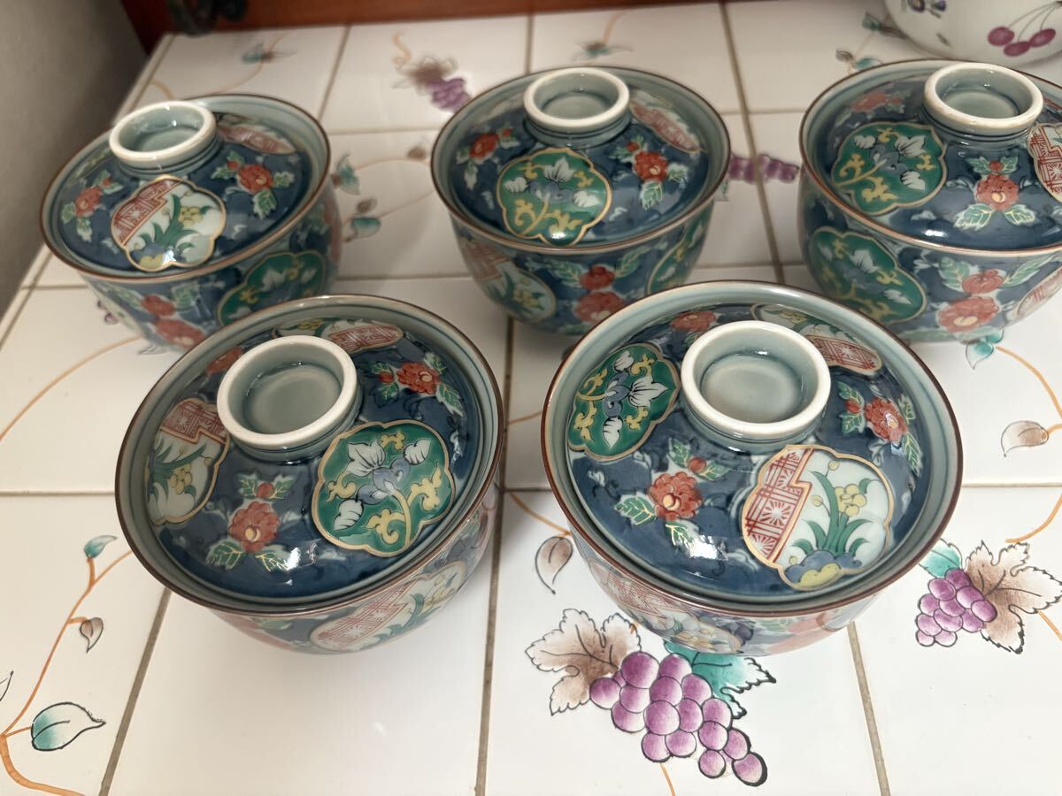 - 有田焼 和食器 五客 陶磁器 茶碗 染付 蓋付 色絵 蓋付飯碗 染錦#有田焼#美品#蓋つき#煮物#椀 5個セット#花柄#和食器#茶
