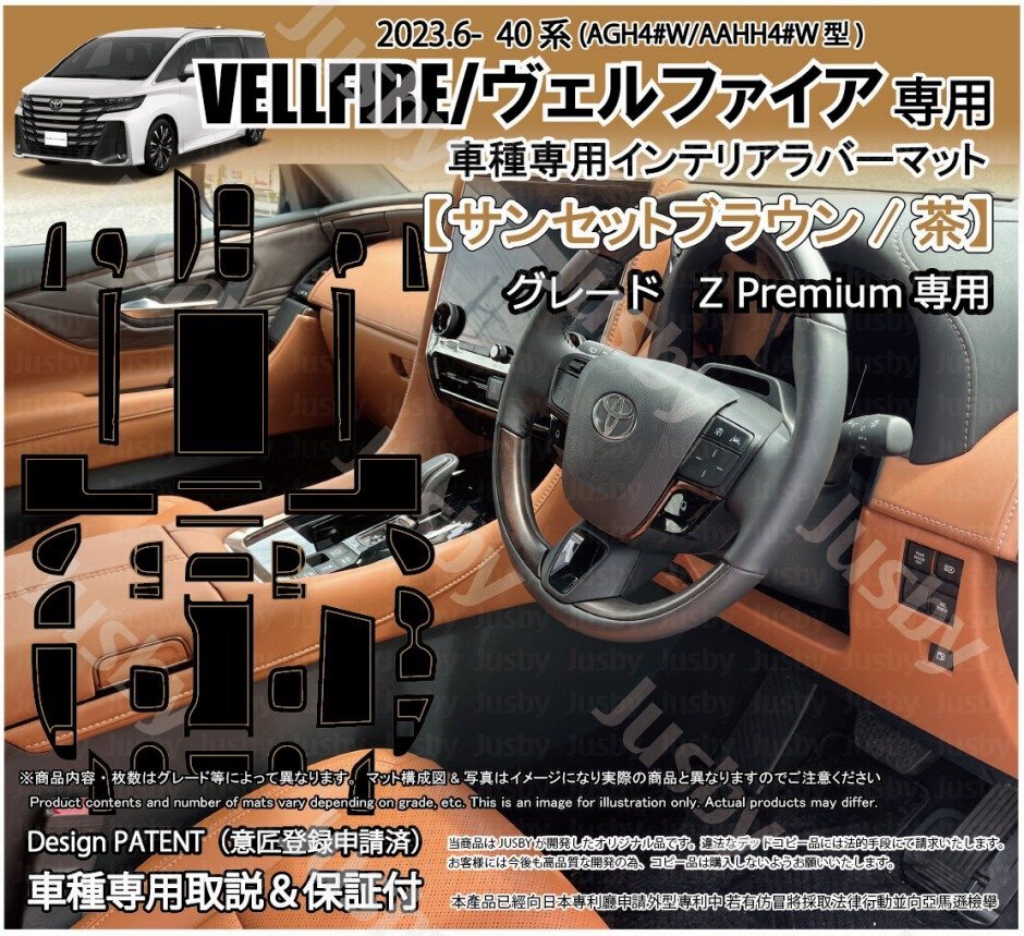 - 新型 ヴェルファイア 40系 インテリアラバーマット (Z Premium/ブラウン 茶色)ドアポケットマット ドレスアップパーツ トヨタ VELLFIRE