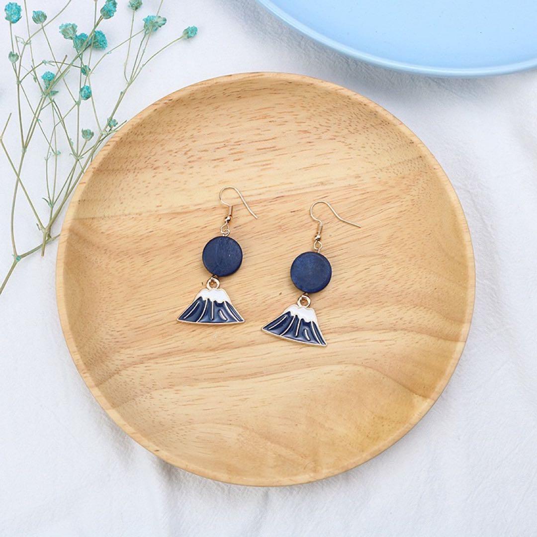 - 1対 ネイビー富士山 デザイン ピアス 送料無料 新品 和風 着物 イヤリング アクセサリー