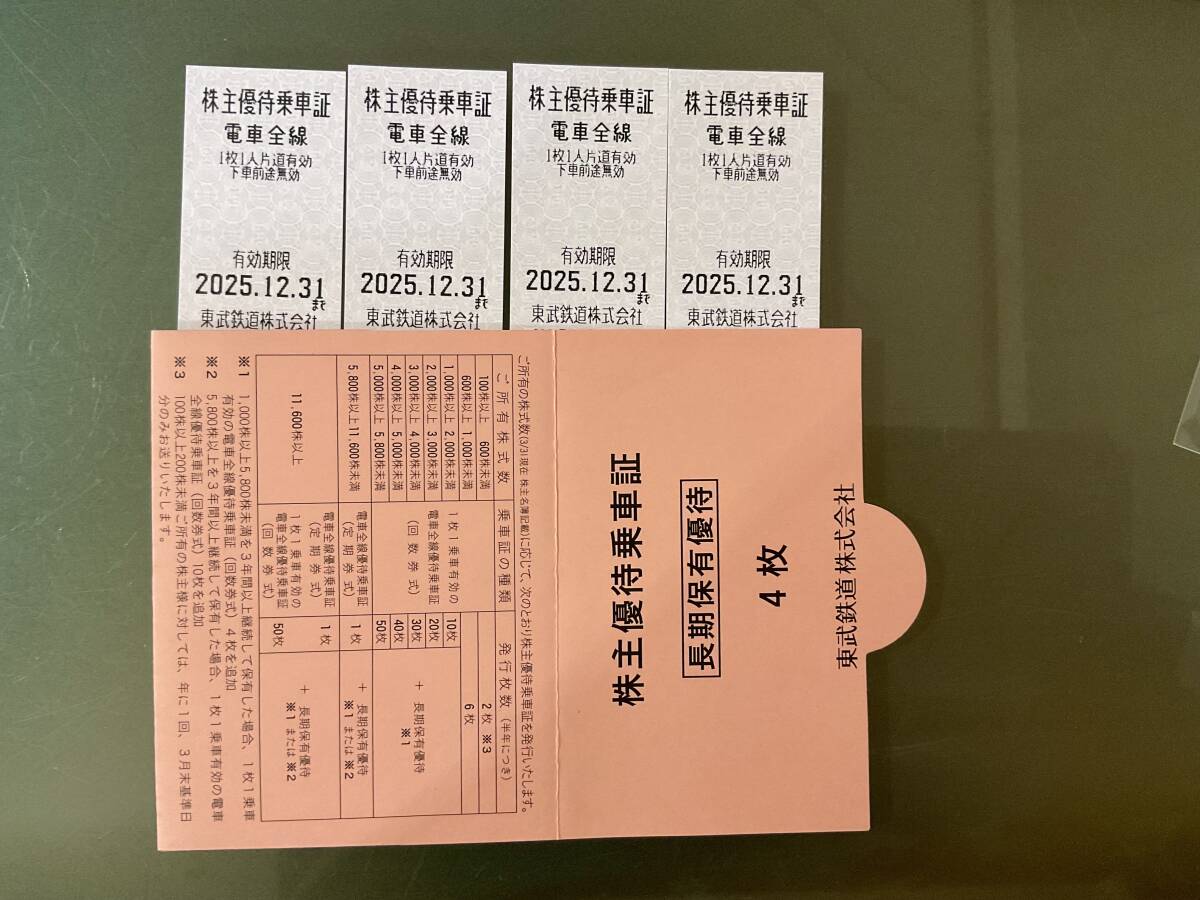 - 東武鉄道 株主優待乗車証 4枚セット 有効期限2025年12月31日 未使用
