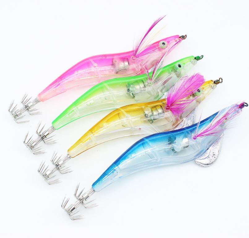 - 送料無料 匿名 LED 点滅 ルアーセット エギ 3.5号 13cm 22g 4本 光る