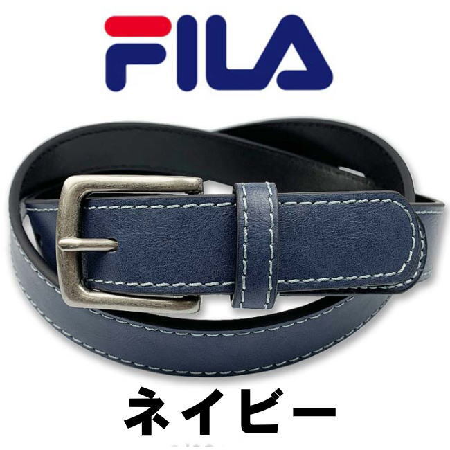 - ネイビー フィラ FILA ベルト ロゴ ビジカジ ベルト 2.8cm 01