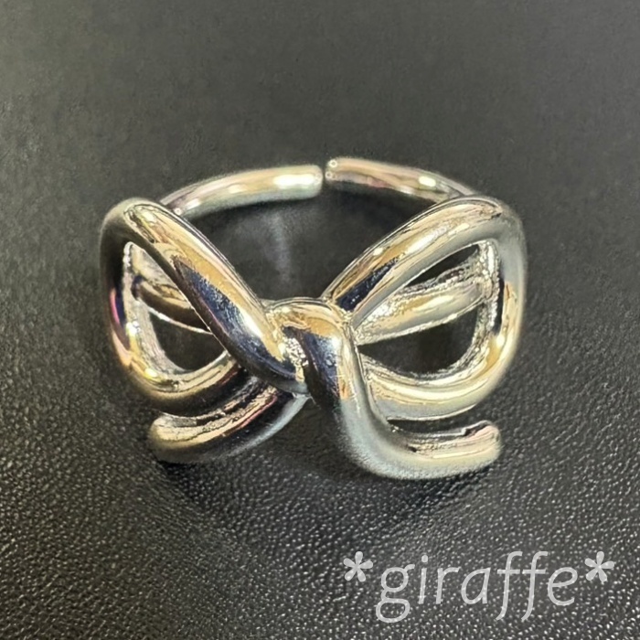 > A972 匿名配送 指輪 レディース 蝶結び リボン リング シルバー 調整可能 開口式 フリーサイズ シンプル おしゃれ 透かし彫り