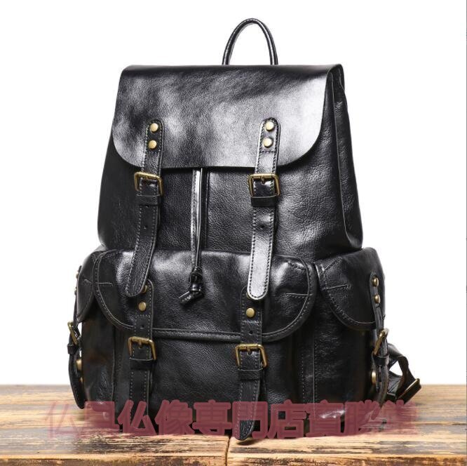 - 【寶勝堂】本革 リュックサック メンズ レザー バックパック 牛革 リュック アウトドア 通勤通学 ブラック