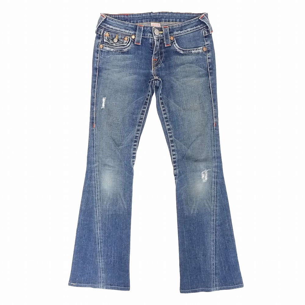 - TRUE RELIGION トゥルーレリジョン USA製 デニム パンツ ブーツカット ダメージ加工 ジーンズ W26 インディゴ レディース 【中古】
