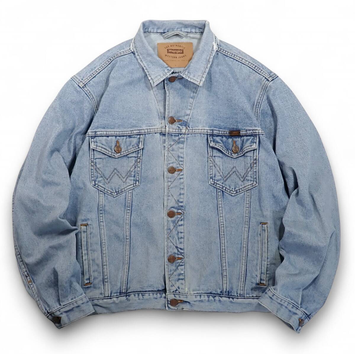 - 7056/Wrangler デニム ジャケット L●洗濯プレス済●襤褸 ダメージ ビンテージ ジージャン Gジャン トラッカー ラングラー古着