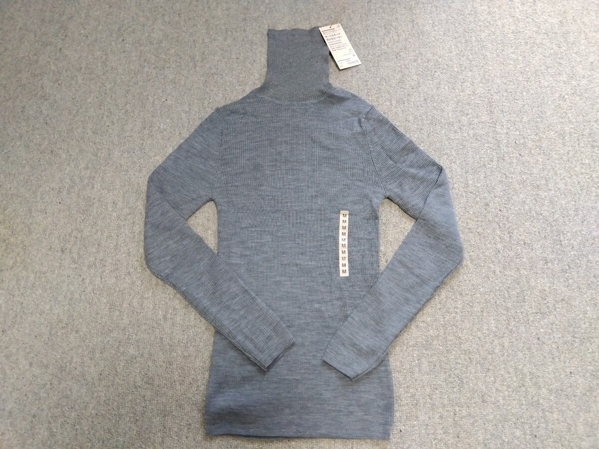 - 新品◆無印良品 首のチクチクを抑えた タートルネック洗えるセーター M グレー◆