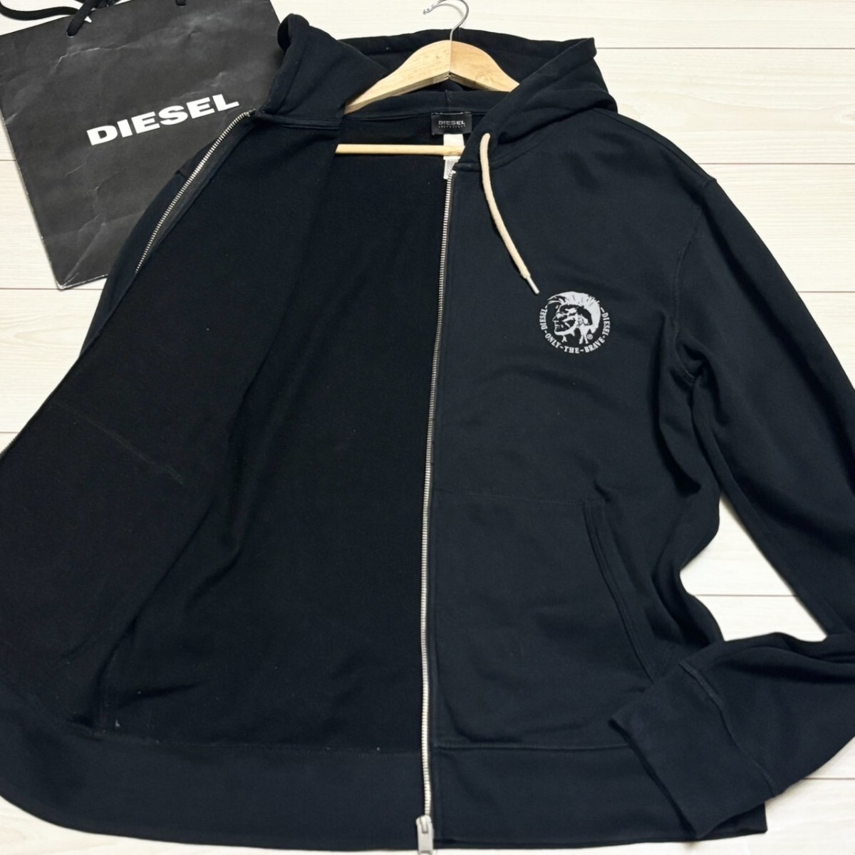 - 極美品/XLサイズ●DIESEL ディーゼル ジップアップ パーカー フーディー ブレイブマンロゴ ブラック 黒 アウター ロゴ刻印