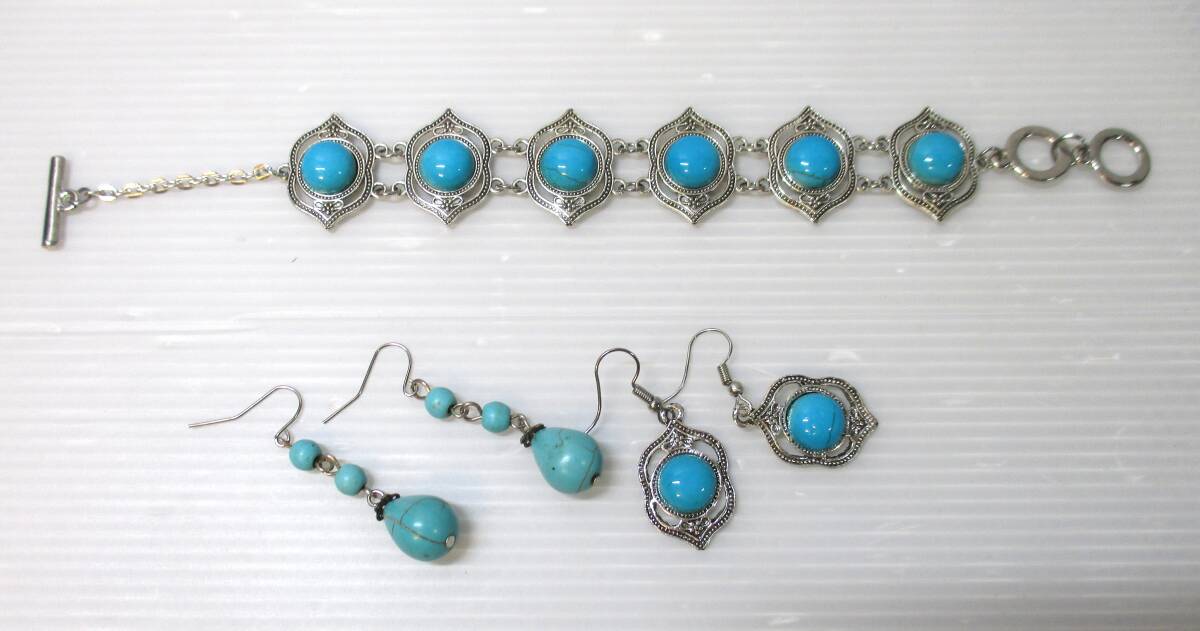 - アクセサリー ターコイズ ネックレス ピアス ブレスレット 三点まとめて