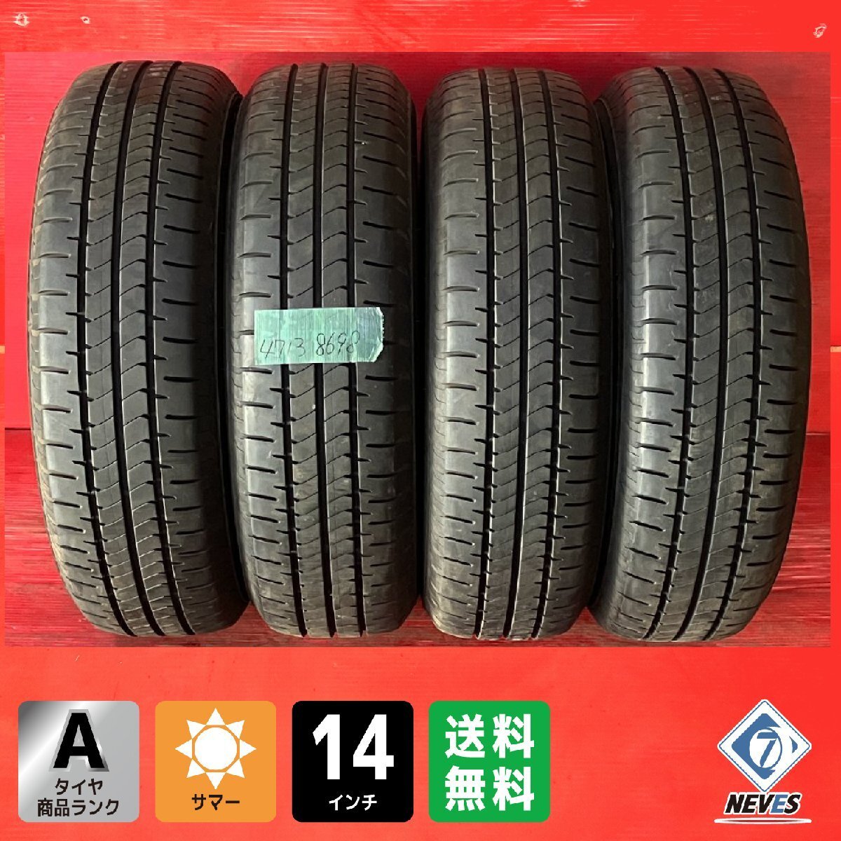 > 【送料無料】中古サマータイヤ 185/70R14 2018年製↑ 7分山↑ BRIDGESTONE NEWNO 4本SET【47138698】
