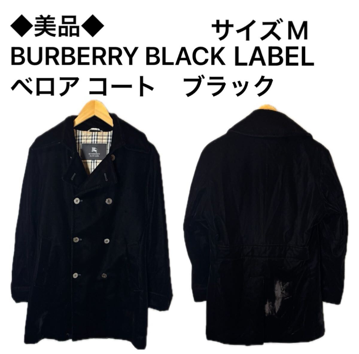 > ◆美品◆ BURBERRY BLACK LABEL ベロア コート ピーコート ナポレオンコート ブラック サイズM