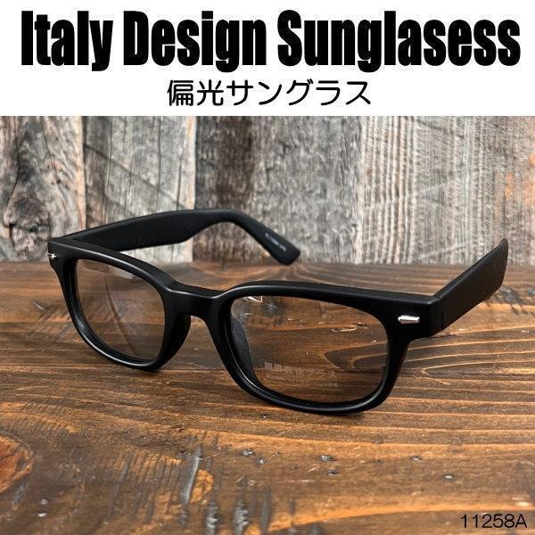 - 【偏光サングラス】ITALY DESIGN:11258-A☆スモーク☆F:マットブラック★ウェリントンタイプ♪