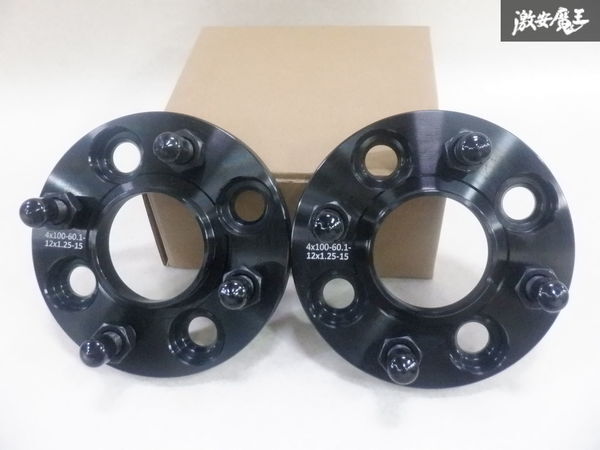> 【未使用】 社外 15mm ワイドトレッドスペーサー ワイトレ 2枚 ハブリング一体型 PCD100 4H ハブ径60.1mm M12×P1.25 ツライチ 棚2F-M-4