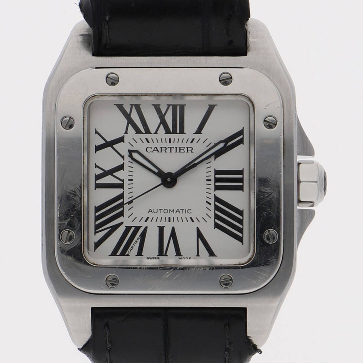 - CARTIER カルティエ W20106X8 サントス100 シルバーダイヤル SS/レザー 自動巻き メンズ【123545】