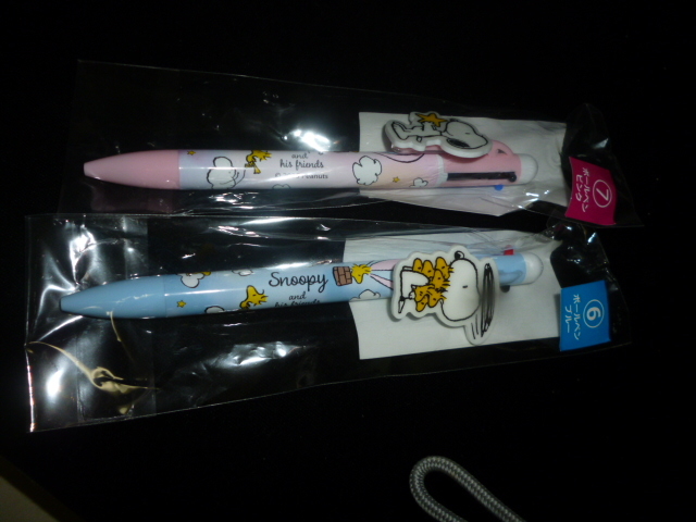- 未使用 スヌーピー 3色(黒赤青)ボールペン 2種セット ピンク・ブルー サンリオ当りくじ
