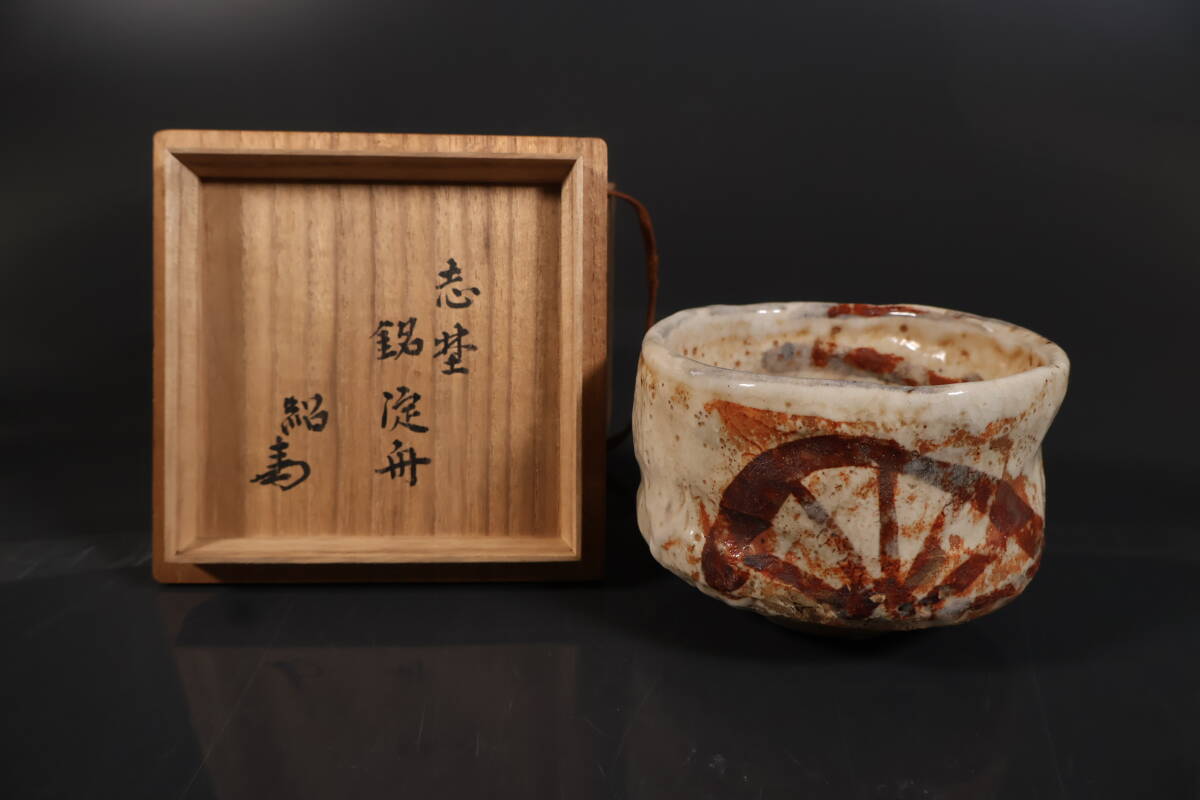 - 【和】(A3453) 時代古作 茶人志野茶碗 茶人箱書有 美濃 瀬戸 茶道具