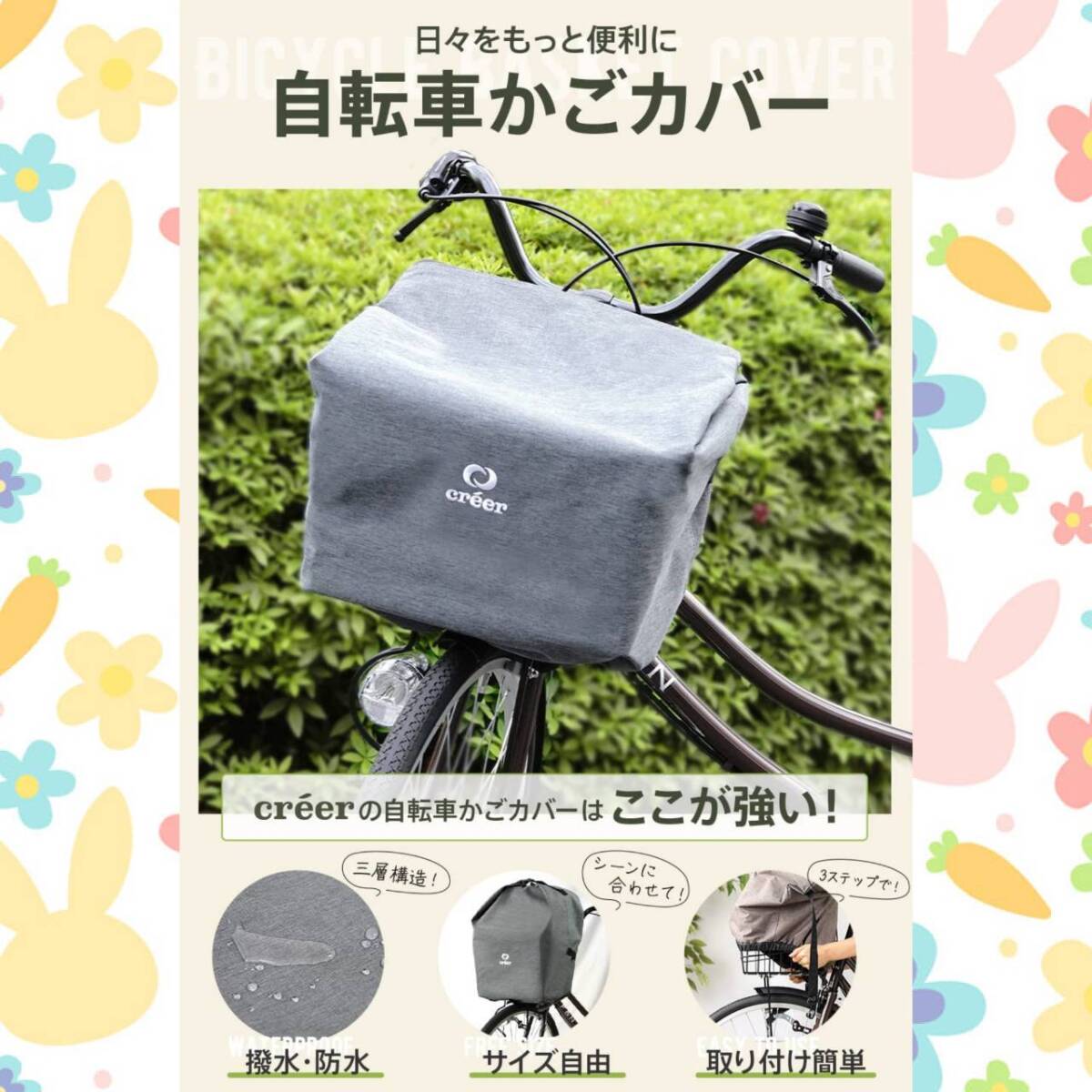 - おすすめ ☆自転車かごカバー 防水 前 耐久性抜群 コンパクトデザイン